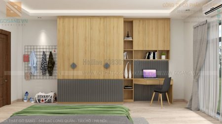 Thi công lắp đặt nội thất phòng ngủ gỗ MDF cốt xanh chống ẩm phủ...