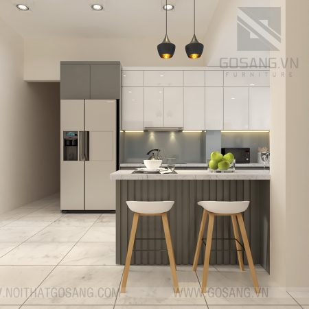 Thi công lắp đặt tủ bếp gỗ Nhựa Picomat kết hợp Acrylic và Melamine cao...